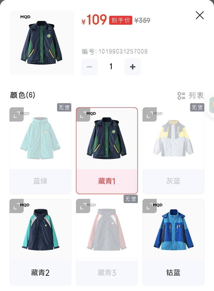 尺码110~195!目测质量好,可选的款式也多。这种外套能穿三季,实用的。