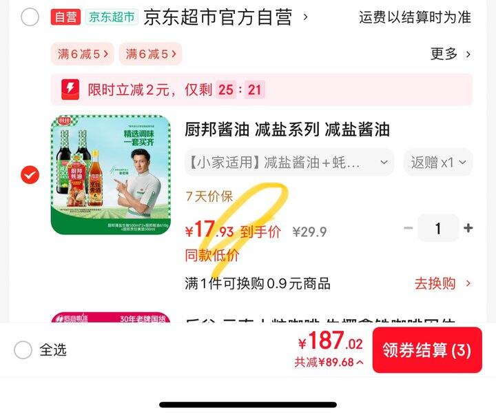 1,厨邦酱油 减盐系列 减盐酱油500ml*2+蚝油610g+烹饪黄酒500ml