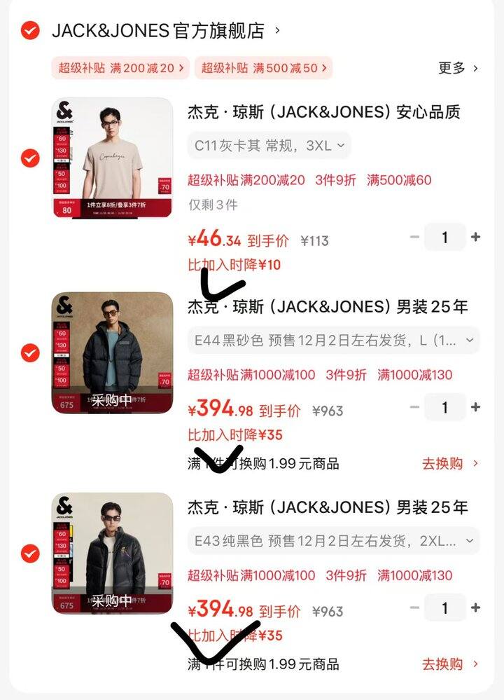 杰克琼斯好价,领2张券
