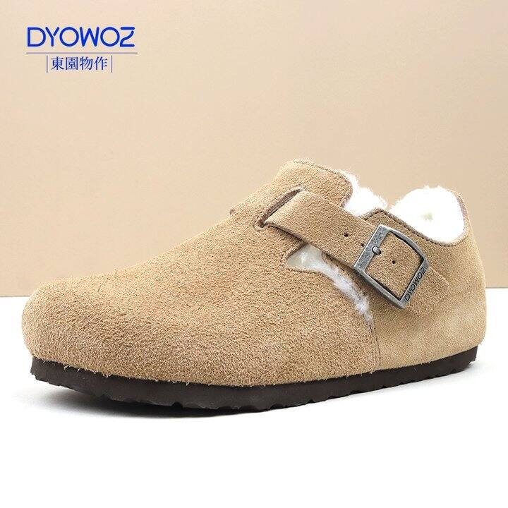 1、DYOWOZ/东园物作真皮勃肯软木鞋全包加厚加绒保暖羊皮毛一体平底