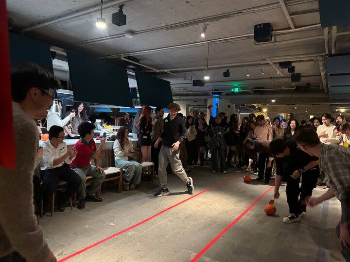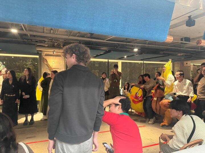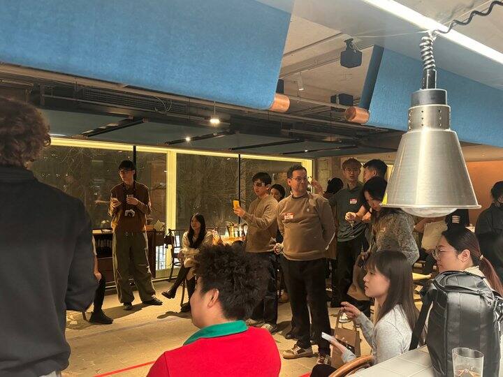 这次放松了一些,因为没有莫名其妙的分组,可以和自己熟悉的朋友待在一起,外加新朋友。桌上的老外也会一些中文,大家就中英文夹杂着聊,放松很多。