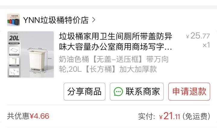 小户型厨房不大买的这个20L的垃圾桶,带轮子但不带盖