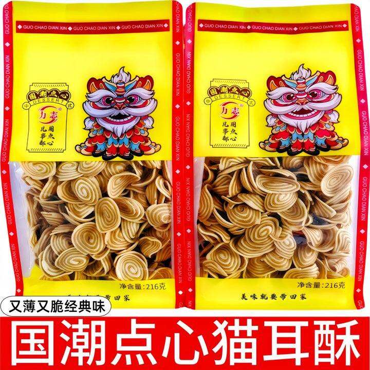 力志【猫耳朵零食】大包装国潮方袋装集市猫耳酥零食脆片薄脆216g