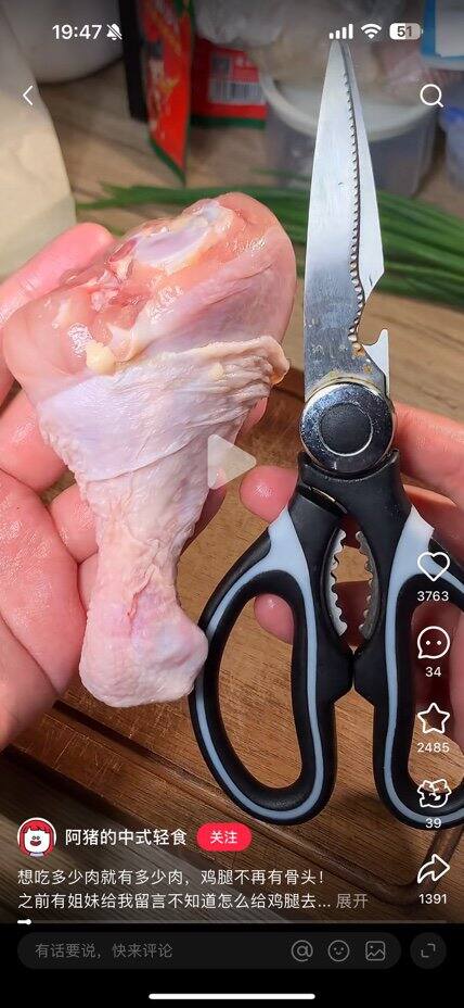 ⬇️去骨方法:手动剥皮、然后找到凹处,顺着凹处剪开,手剥不动就用剪刀剪下