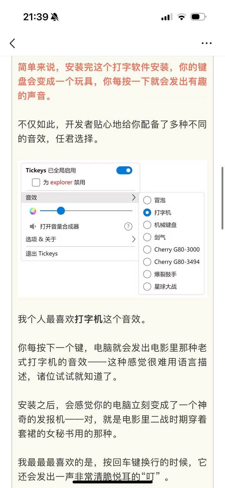 推荐:打字音效软件Tickyes——人还坐在办公室,大脑一秒已魂穿