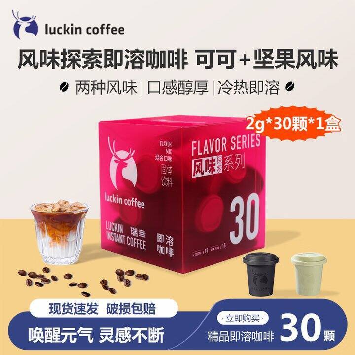 JD【69.00】瑞幸咖啡.速溶冻干咖啡2g*30颗,包含可可味15颗+坚果味15颗,折2.30元/颗,非plus会员也包邮 https://u.jd.com/Wgk6nsz