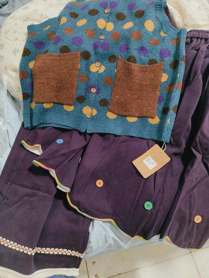 这次买了一个马甲,一条裙子,一条裤子,实在太喜欢颜色就下手了!
