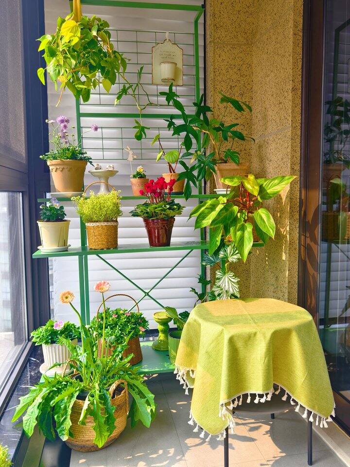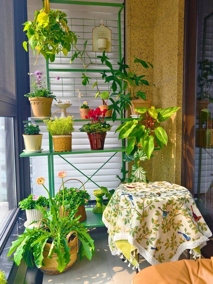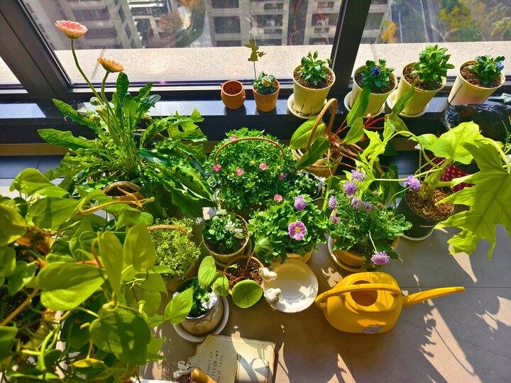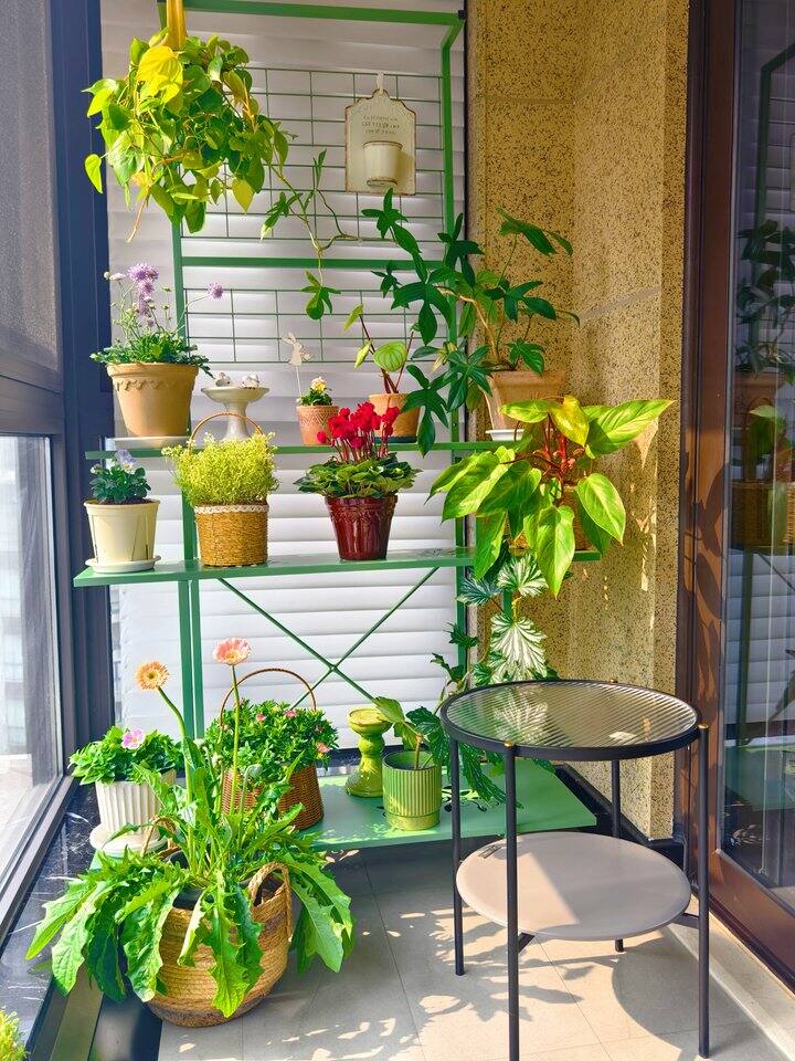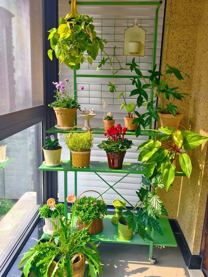 装好了花架,然后就是把这一地的花花草草给摆到花架上去咯!