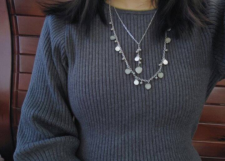 我今天戴的这个就是他家买的,原本还搭了一条超长的三层链(有点浮夸)拆下来了,感觉灰色针织衫不配个亮点的项链实在太单调。
