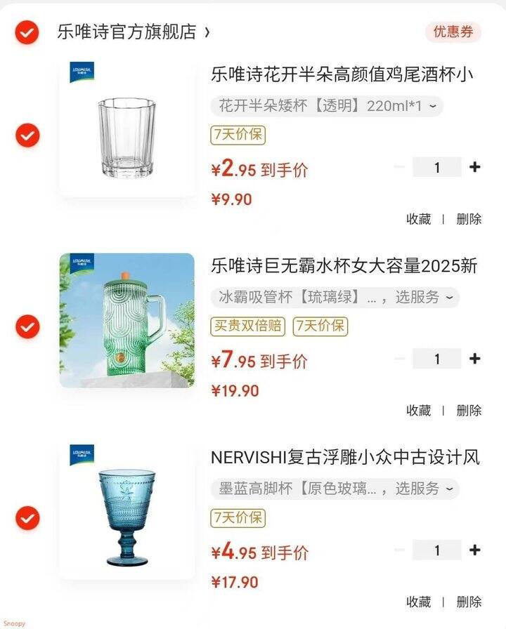 乐唯诗 花开半朵矮杯透明220ml【2.9💰】