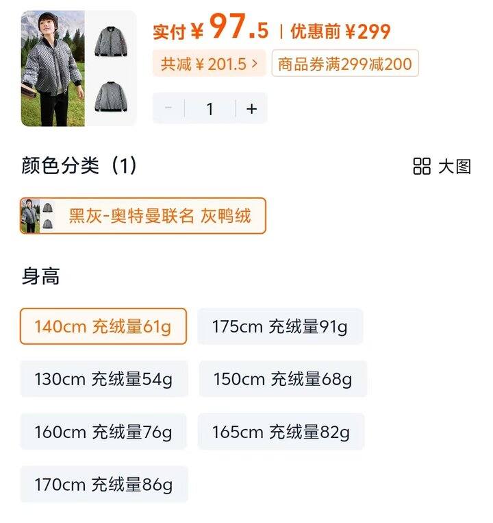 🍑巴拉巴拉奥特曼IP儿童羽绒服