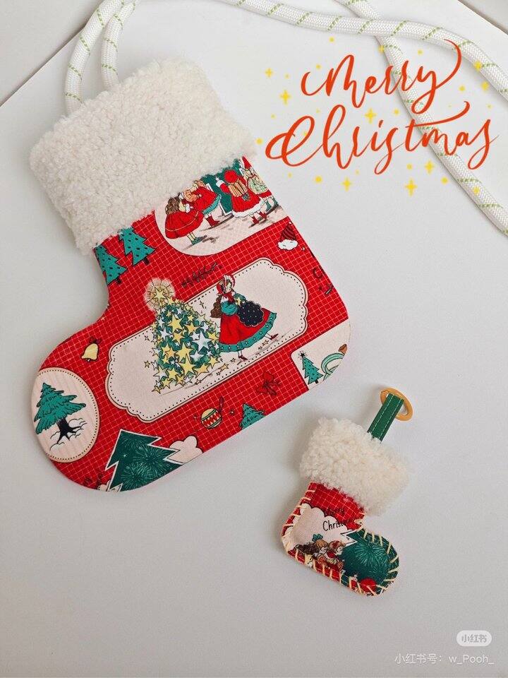 可可爱爱的圣诞🧑🎄袜子,做成耳机包肯定很萌!!!