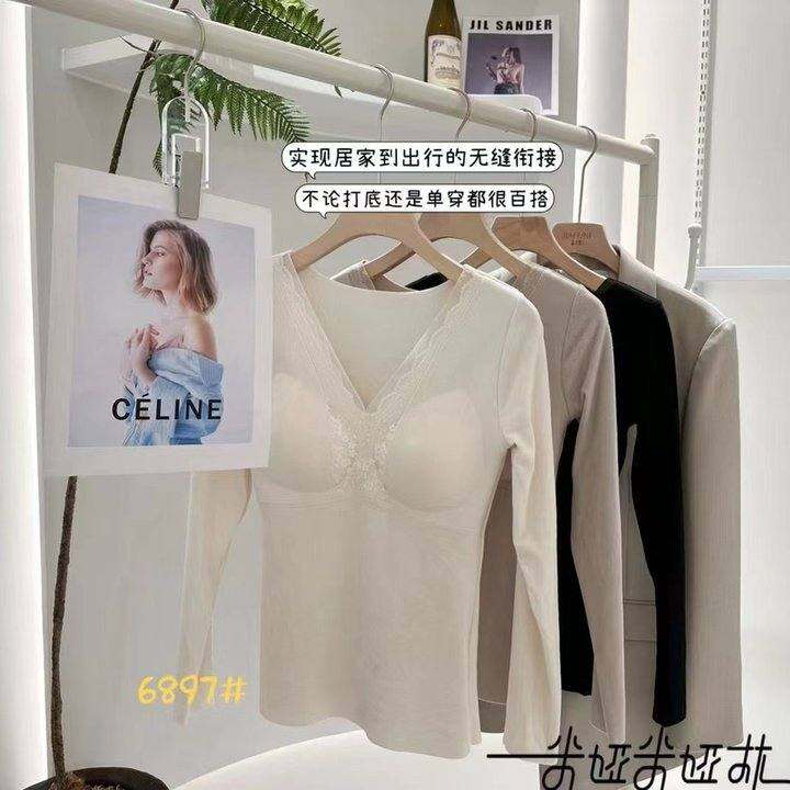 米娅林6879椰子油润肤磨毛保暖打底衫带胸垫V领长袖发热打底上衣