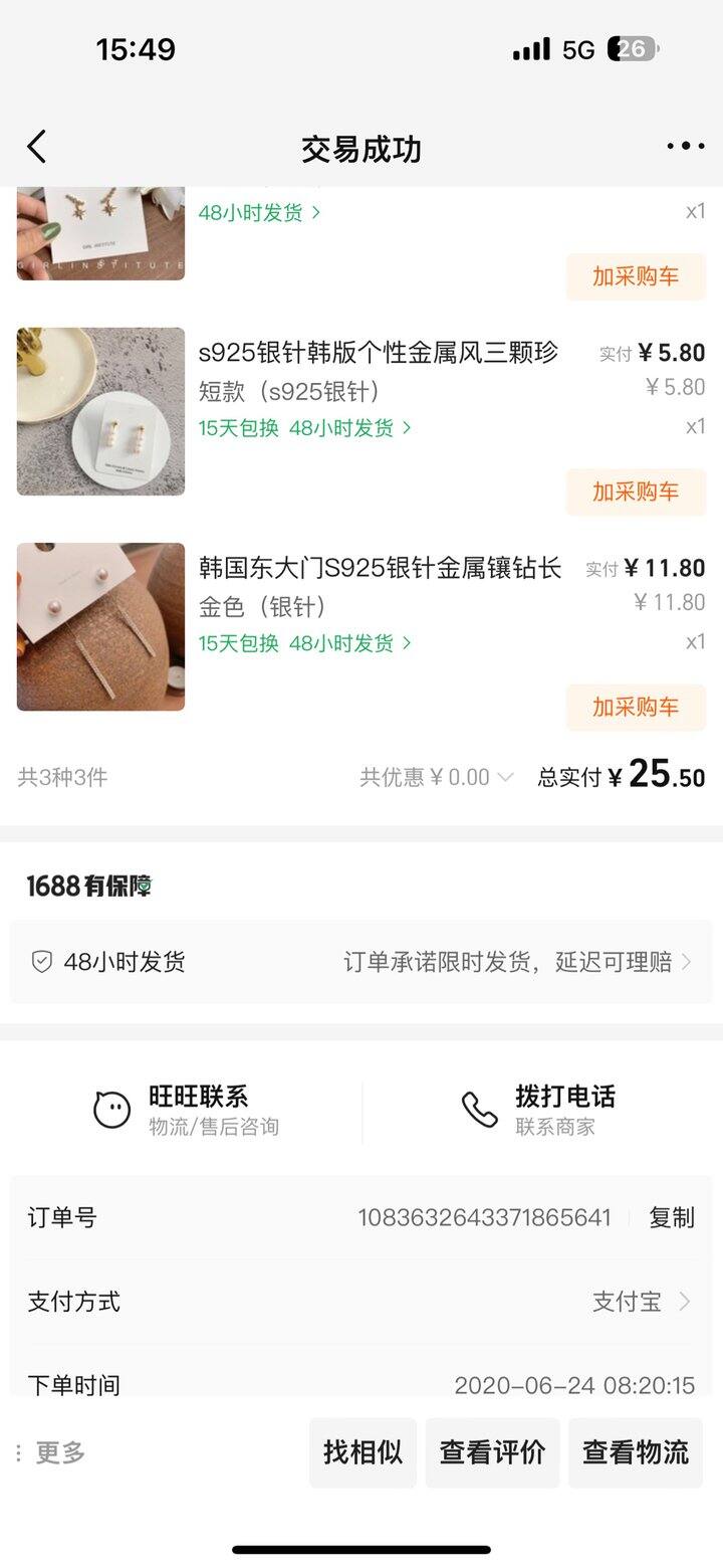 昨天戴的第三个珍珠长款耳坠,不小心弄断了。想重新下单一对,一翻订单,居然是2020年买的[哭笑][哭笑]