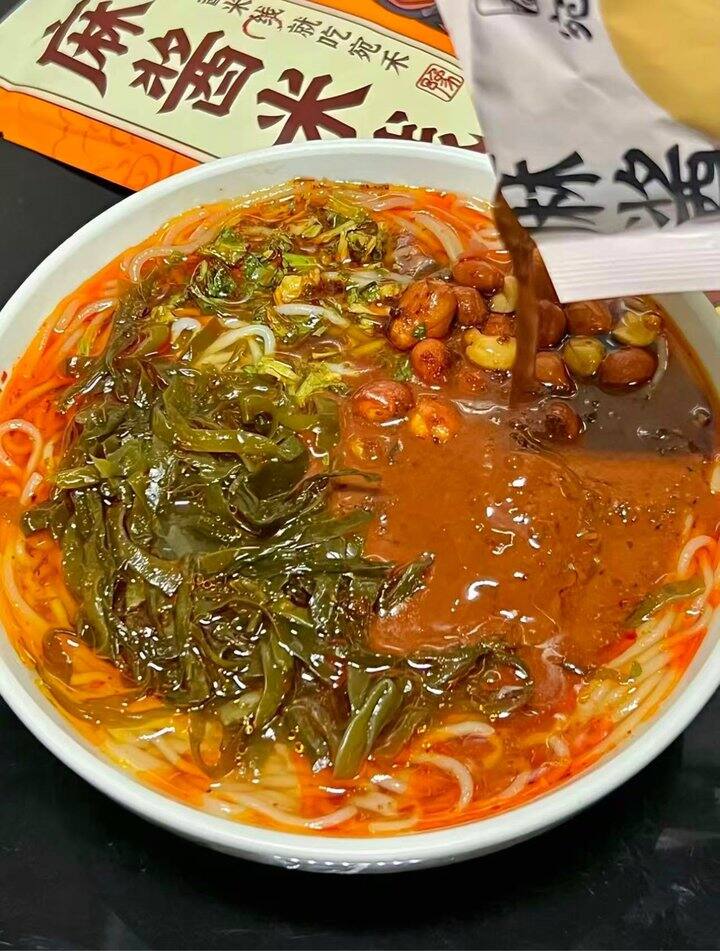 细米线吸饱了浓郁的汤底+厚厚的麻酱!