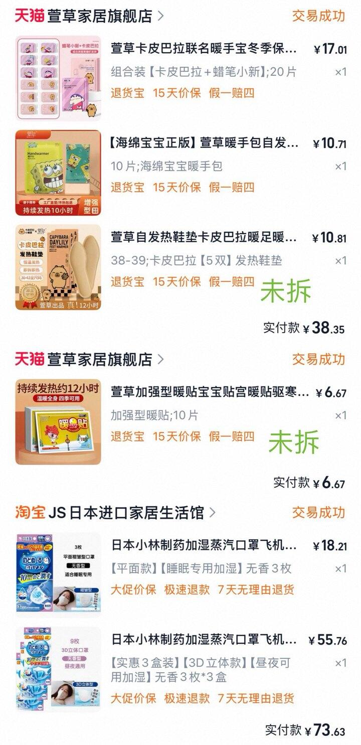 1.萱草 暖贴、暖手宝:为了去长白山买的,除了暖手宝其他都没用上。。那种一包一包的暖手宝用来放在衣服口袋里,第一款那种可以像手套一样戴在手上的,用来套在手套里,这个设计真的好方便,还可以套在脚上。2.小林制药 加湿口罩:去长春的第一天很不习惯那边冷空气吸入的感觉,鼻腔又干又冷呼吸很难受。出发前不知道在想啥觉得可以用这种加湿口罩,实际是不如戴普通厚口罩,因为我主要是空气太冷难受而不是太干。用这种加湿口罩反而加深了面部的凉意。