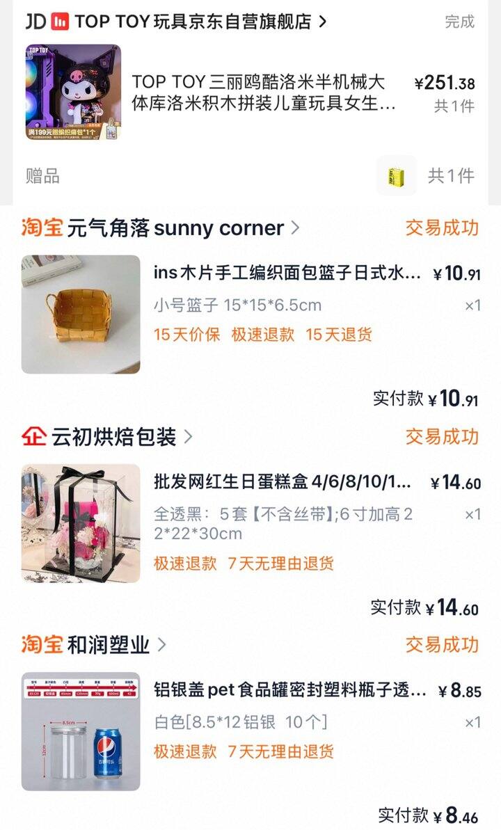 1.TOP TOY三丽鸥半机械大体:蛮酷的也很好看,不过这个外壳有点不能严丝合缝,优点可能就是让我比较好拆开外壳吧😅。然后有个圆柱体配件中间的孔的形状,应该要4个➕的才对,它配的3个➕1个❌。。申请补件后给我又发了一个❌。。于是本来应该是两边各两个➕上下相叠拼一起,我就只能两边各1个➕了[鹿擦汗]。2.木片手工编织面包篮子:本来想买个木质的方形置物盒,看了下都贵贵的,这个款式感觉还挺有趣的就买了,而且便宜好多。实物还不错,唯一不喜欢的就是它的颜色,挺像木瓜表皮的那种黄色,所以可能还是放面包颜色会更搭吧。