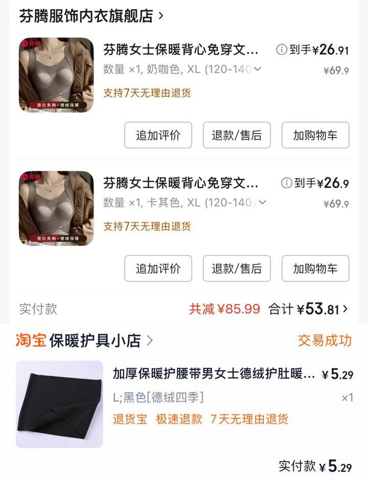 5.芬腾 保暖背心:带胸垫,布料柔软,整体没问题,问题在于我胖,会卡腋下[鹿哭],肚子那边不会绑着,但是因为贴身,就总有提示自己好胖的那种感觉。6.保暖护腰带:有一件夹棉短款皮衣,穿着的时候总觉得腰部凉凉的不得劲,突发奇想是不是可以里面加个保暖护腰的。这几天又热了,皮衣还没拿起来穿还不知道这样有没有效果。单纯这条护腰带的话,试了下还可以。其实如果家里有不穿的贴身保暖内衣,可以剪一剪拿来用的[鹿笑哭]