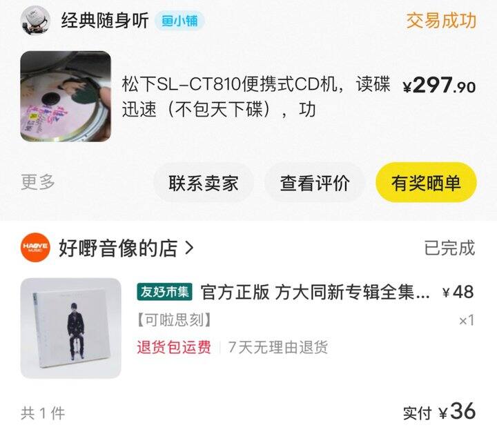 3.松下 ct810cd机:为了听专辑买的,大促的时候想买飞傲dm13,但是抢不到狗东的国补,这个月中旬它家出了新款dm15,有点舍不得,最后觉得还是淘个老机子吧。看了好几款,不太懂cd机,就是觉得ct810比较合我眼缘和听缘。买的这台电池仓已坏,只能接电源播放,这个没差我又不带出门。等之后再换个音箱,效果应该会更好。