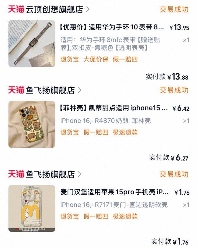 4.华为手环8表带:还挺好看的。原来的表带被猫咬的花花的,换一个。5.手机壳:印花清晰看着还不错,还没用。
