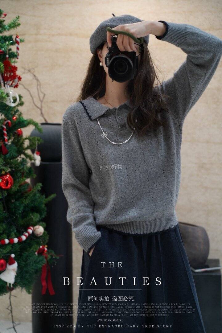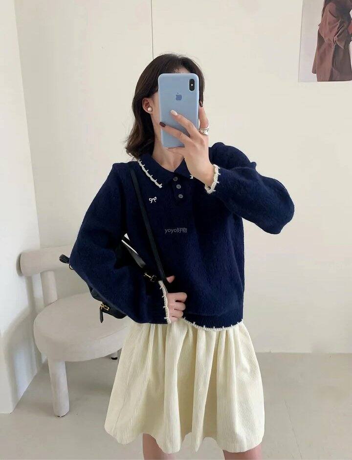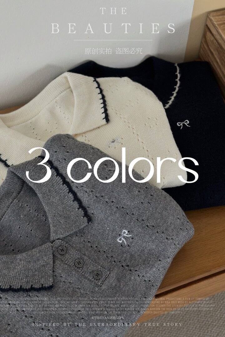 三色镂空刺绣蝴蝶结针织衫!💰99限时