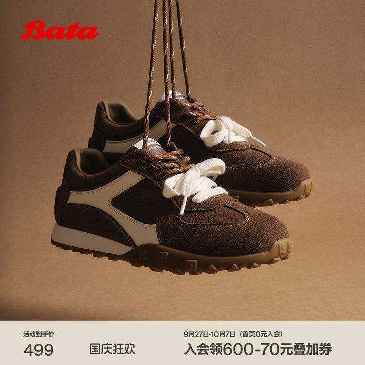 Bata曲奇软酪2025秋商场新款双色鞋带复古休闲运动阿甘鞋6589DCM5