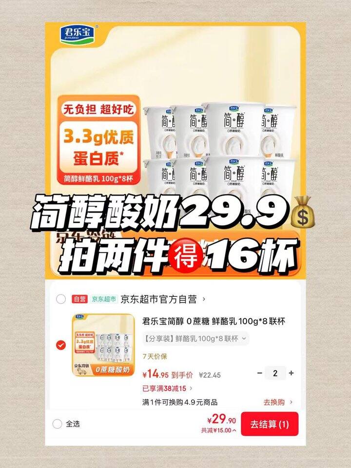 君乐宝简醇0蔗糖酸奶!💰1+