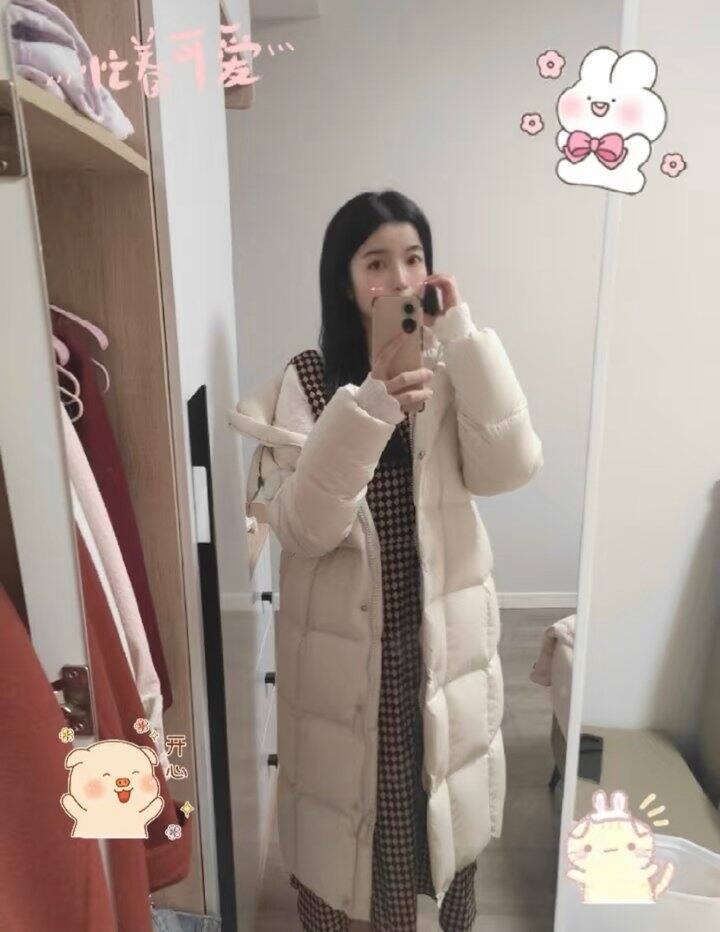 美力城 过膝长款连帽鹅绒服女