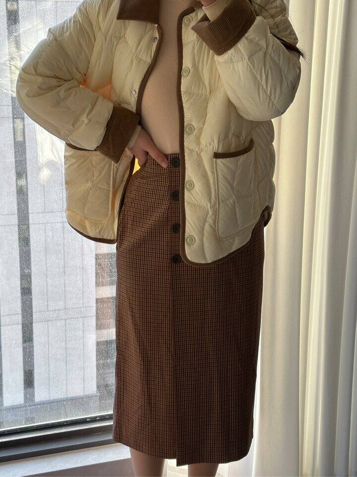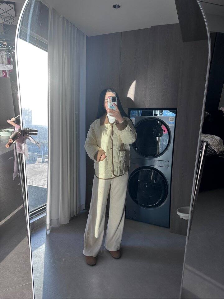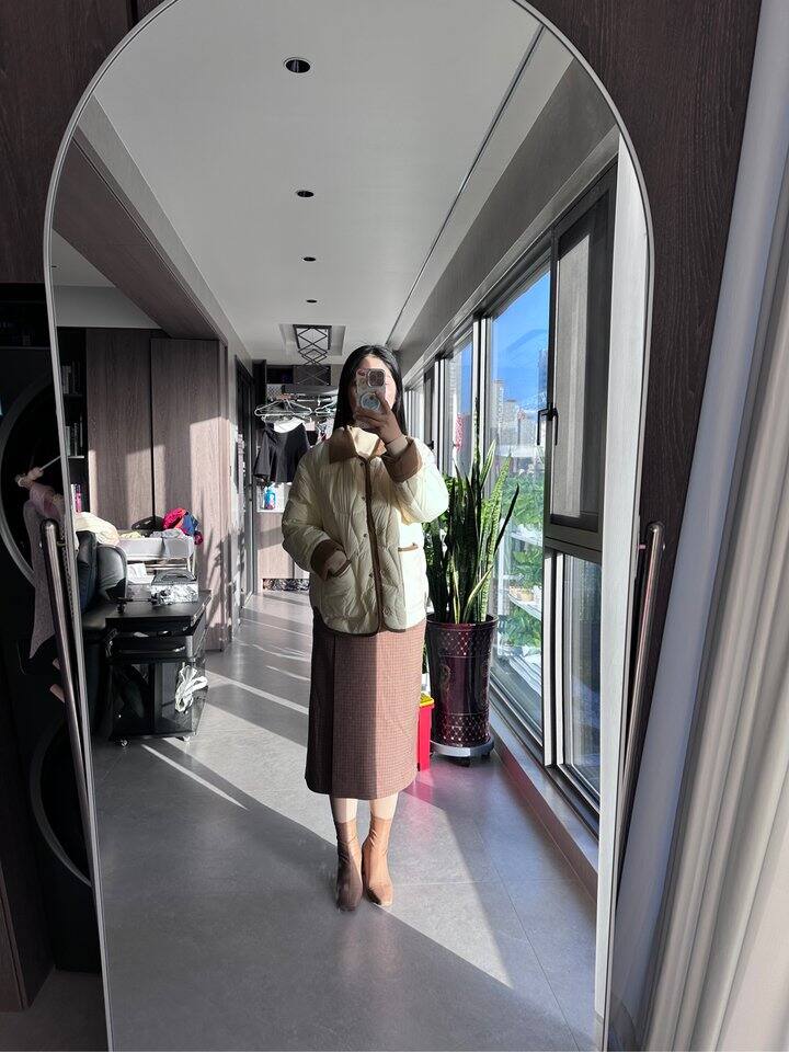 新买的这个坦博尔羽绒服,很舒服,不是立领的,很宽松,我一直披头发,领子太高的不舒服