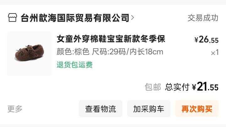 1688购入,尺码比较准,我买的大了点,怕挤脚,她挺喜欢也就没换。这双鞋很好穿上,她自己就能穿脱。