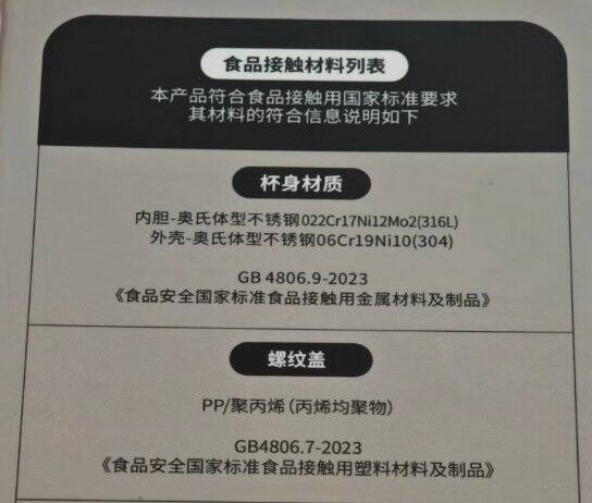 内胆316L 保温水杯。