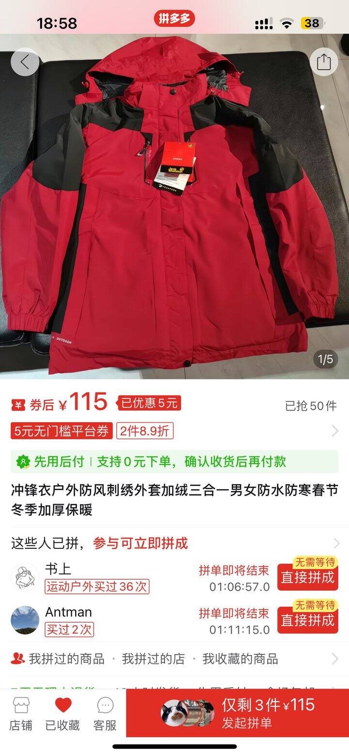 jackwolfskin狼爪三合一抓绒冲锋衣