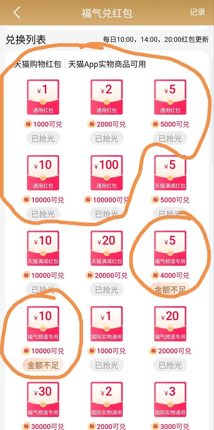 做任务得福气,还可以用福气兑红包。我画圈了的都能用来买金。
