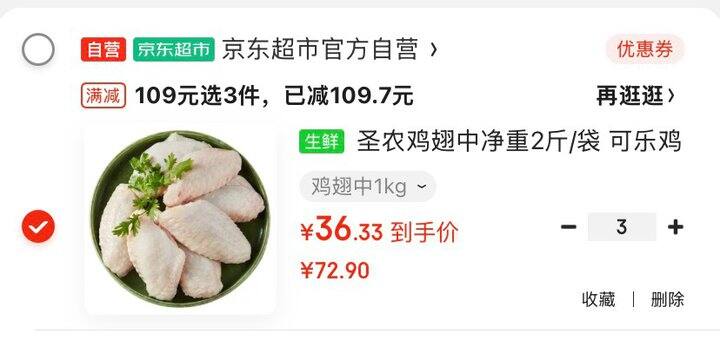 自营圣农 鸡翅中 净重2斤