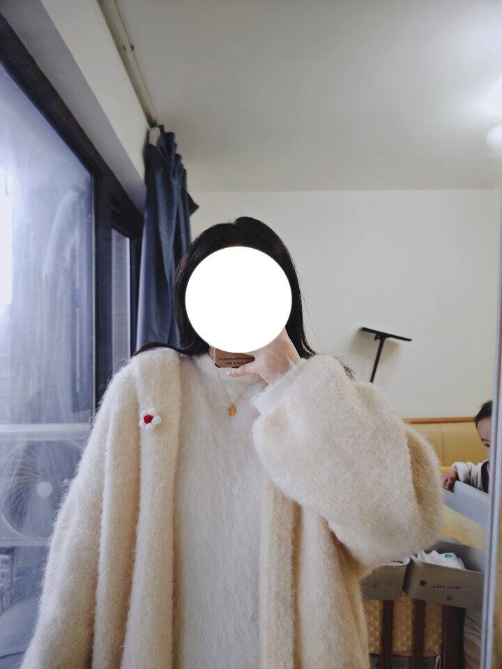 今天是红白小花[哈哈][哈哈]。姐妹们可别买这种美丽的废物外套了,没拉链没纽扣,太重了导致穿着一直往后垂,要不停的提衣服,不保暖,我已经在寻摸找裁缝看能不能加个拉链了[大哭][大哭]