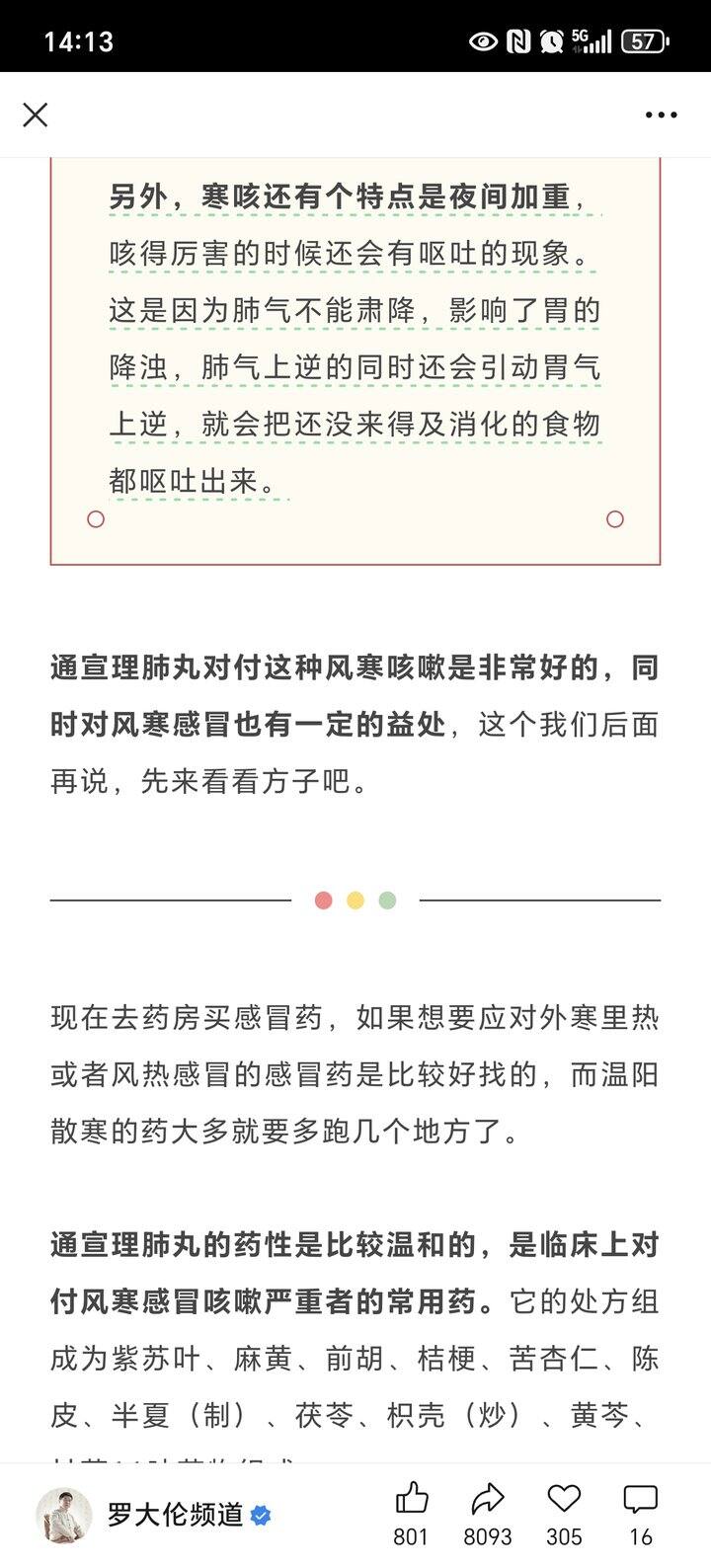 下班回来,还是咳嗽,但有减轻。改用通宣理肺颗粒(治风寒咳嗽),还是每次2袋,一天2次,咳嗽大有减轻,并出现轻微的白痰。整个人的精神已经恢复。