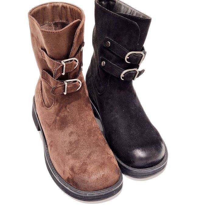 97807磨砂绒加绒特价清版方头粗跟时装靴显瘦女靴子短靴马丁靴