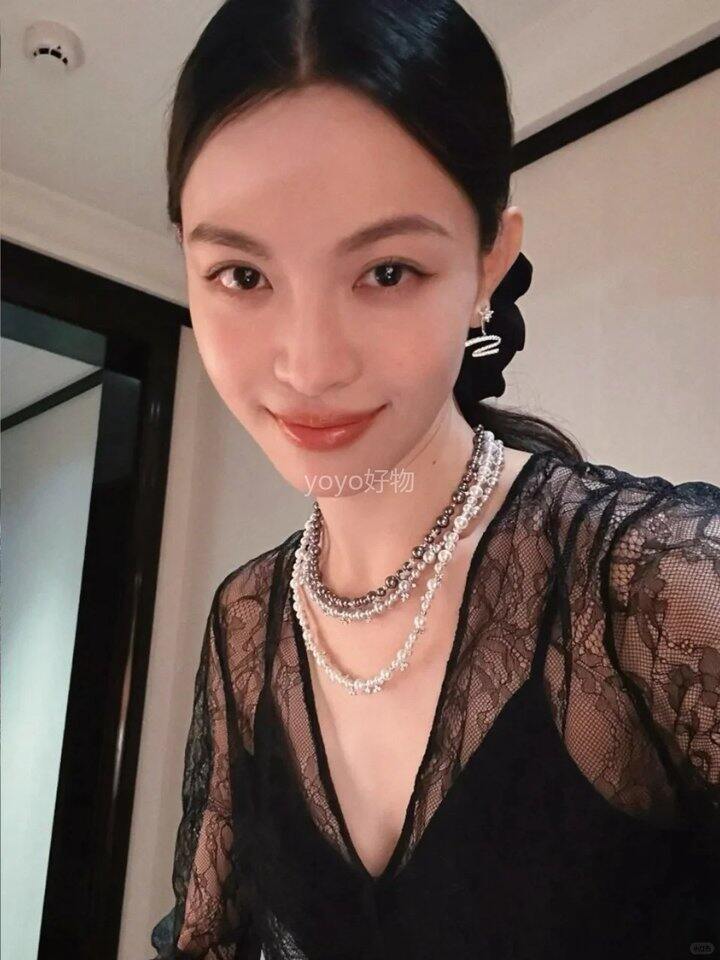 时髦精必备 除了光泽漂亮的珍珠 还有闪钻星光点点落在锁骨上