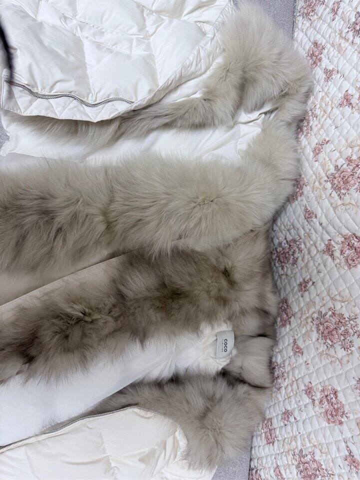 coco家的毛领颜色深一点,羽绒服颜色偏暖调,更好看。