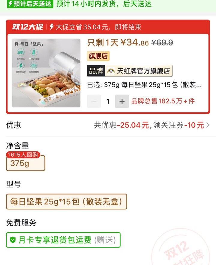天虹牌每日坚果15包丨34.86