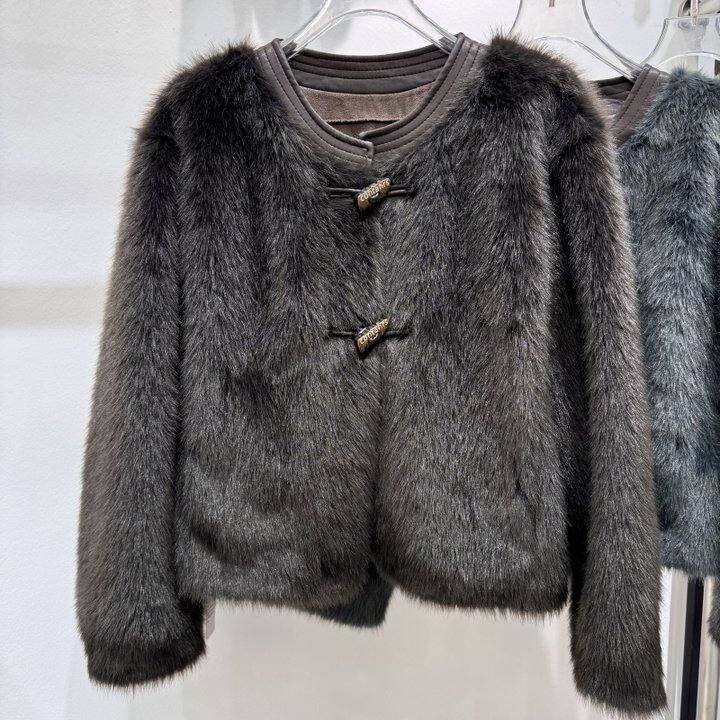 高级感小香风牛角扣毛毛外套女秋冬新款保暖加厚皮毛一体气质上衣