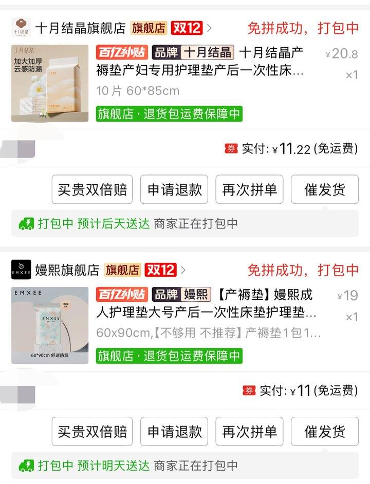 买了两包,到时候不够再说 十月结晶、嫚熙 60*90