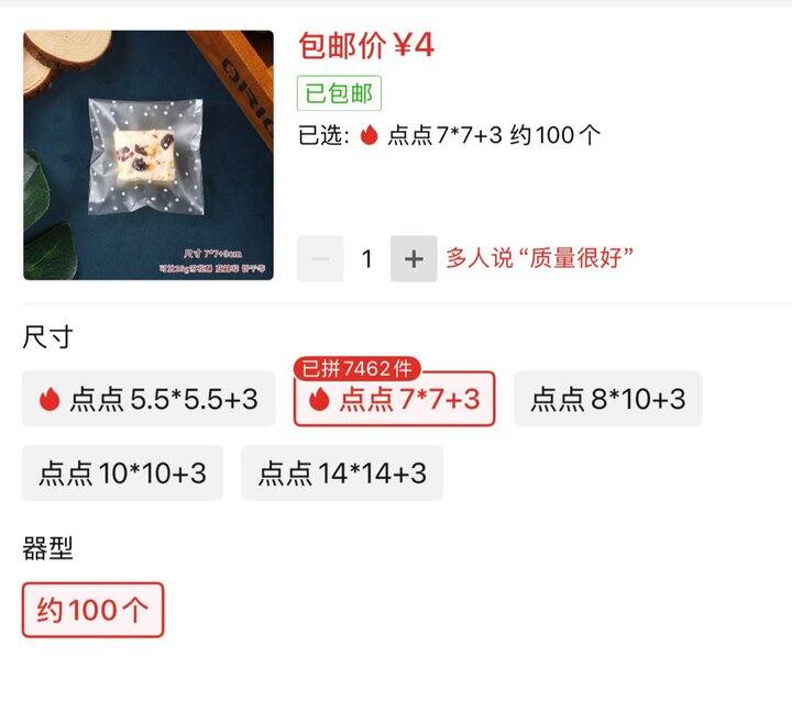 这家我买的是7*7+3的规格100个可以用到天荒地老