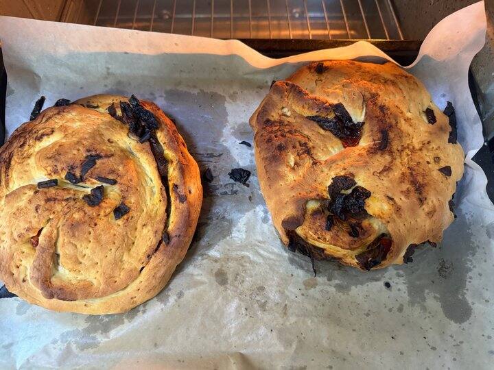 坏消息:包完馅料烤盘垮哒掉地板,面粉团着地
