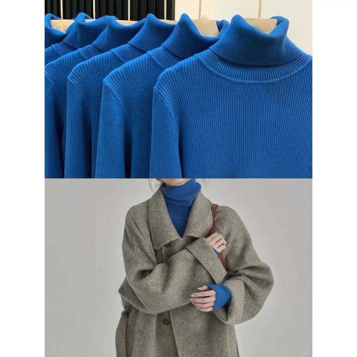 克莱因蓝高领针织毛衣女秋冬叠穿长袖修身显瘦内搭打底衫洋气上衣
