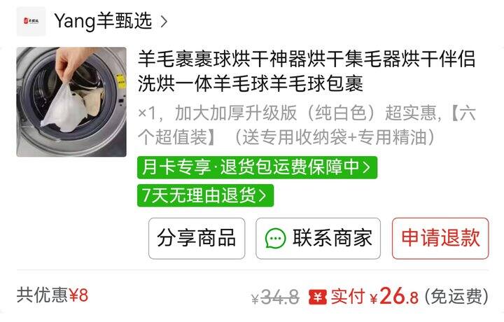 从小🍠上种草的这个羊毛球,比普通的羊毛球多一层套子,所以洗烘一体机可以使用,在清洗前加入,会随衣物一起洗一起烘。小🍠上种草的就是洋小满这个品牌的,价格是70元6个,在pxx上搜到这家,我看晒图有人晒出收到的就是洋小满,就去问了店家,店家说非品牌产品,库房随机发货,等了几天,平台给了券,26.8元,收到就是洋小满,做工也很精致,可入。