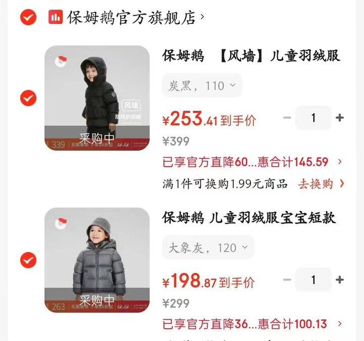 保姆鹅羽绒服短款198💰💰中长款风墙款253💰