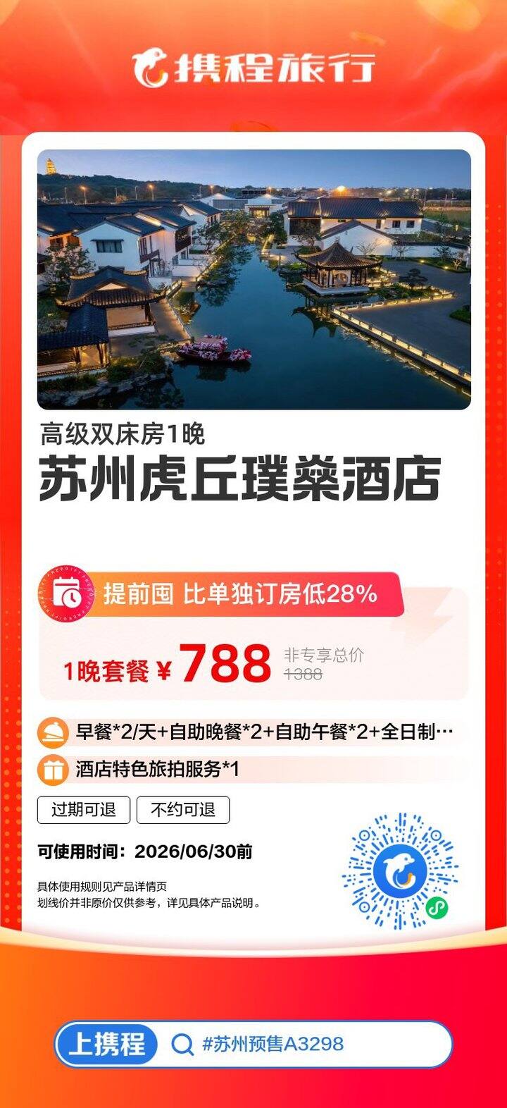 囤酒店,苏州虎丘璞燊 773包5顿饭