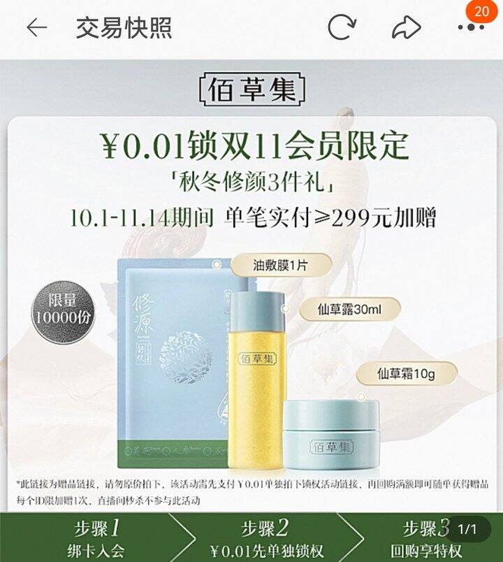 一分钱礼赠:仙草露30ml➕仙草面霜10g➕面膜1片➕仙草油1ml