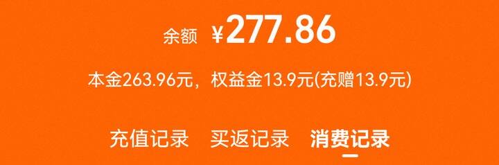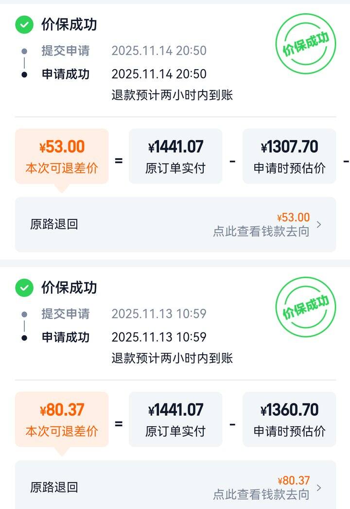 退了一次差价➕两次保价,购物金里是277.86,退回263.93,打了一个95折扣。